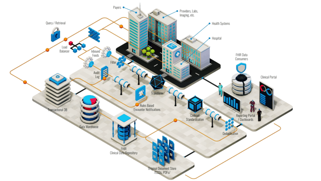 Interoperability ensures that different healthcare systems, such as electronic health records (EHRs), laboratory information systems (LIS), radiology information systems (RIS), and others, can communicate effectively and share patient data accurately.